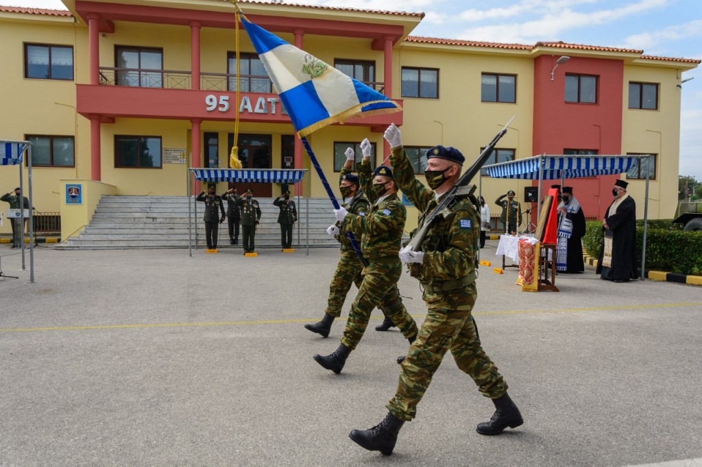 Χωρίς προσκεκλημένους και με μειωμένο αριθμό προσωπικού διεξήχθη η τελετή αλλαγής Διοίκησης της 95 ΑΔΤΕ την Τετάρτη 10 Μαρτίου 2021 με την παρουσία του Διοικητή της ΑΣΔΕΝ Αντιστρατήγου κ. Νικολάου Φλάρη. Ο Σεβασμιώτατος, ο οποίος προέστη του Εκκλησιαστικού μέρους της Τελετής (Δοξολογία) πλαισιούμενος από τον Στρατιωτικό Ιερέα π. Γρηγόριο Μπόλη και τον Αρχιδιάκονο π. Γεράσιμο, ευχαρίστησε τον απερχόμενο Διοικητή Υποστράτηγο κ. Δημήτριο Χούπη για την εν γένει παρουσία του στο νησί μας, για την καλή συνεργασία και το ενδιαφέρον του και του ευχήθηκε καλή επιτυχία στη νέα του θέση, ως επικεφαλής του Κλάδου Διακλαδικών Πληροφοριών στο ΓΕΕΘΑ.