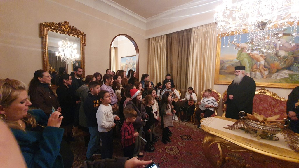 Την Παρασκευή 22 Δεκεμβρίου 2023 στα Γραφεία της Ιεράς Μητροπόλεως και την παραμονή των Χριστουγέννων στην Μητροπολιτική κατοικία ο Σεβασμιώτατος, κατά το έθος, άκουσε τα Χριστουγεννιάτικα Κάλαντα από την Φιλαρμονική του Δήμου Ρόδου, το Μουσικό σχήμα της 95ΑΔΤΕ, τις χορωδίες του Συλλόγου Ιεροψαλτών Ρόδου, παιδιών των Κατηχητικών Σχολείων των Ενοριών της πόλεως, καθώς και από ομάδες μικρών καλαντιστών.