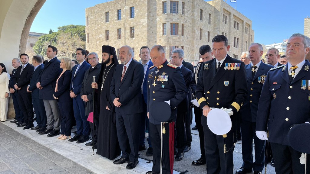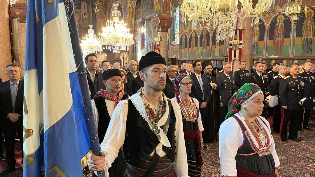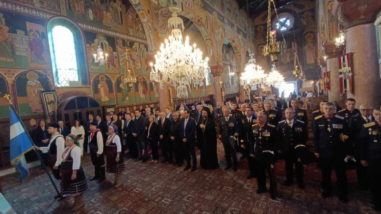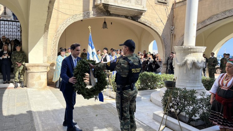 Μετά το πέρας της Δοξολογίας, τελέσθηκε επιμνημόσυνη δέηση και κατάθεση στεφάνων στο Βωμό της Πατρίδος και ακολούθησε η μαθητική και στρατιωτική Παρέλαση.