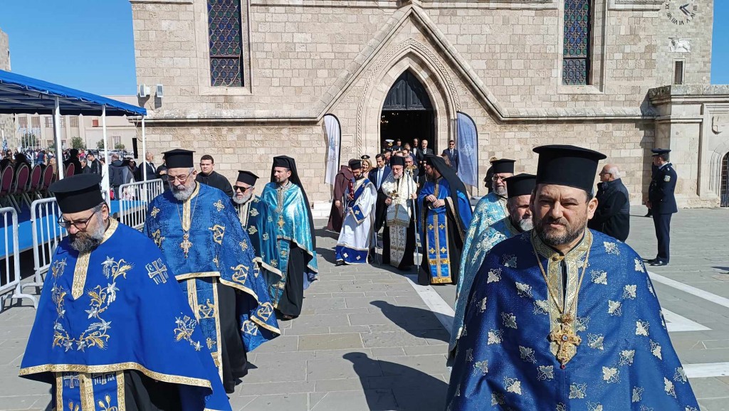 Μετά την πανηγυρική Θ. Λειτουργία επί τη Συνάξει πάντων των εν Δωδεκανήσω διαλαμψάντων Αγίων στον Καθεδρικό Ιερό Ναό του Ευαγγελισμού, έλαβε χώρα η καθιερωμένη Δοξολογία υπό του Σεβασμιωτάτου Μητροπολίτου μας κ. Κυρίλλου, παρουσία του Θεοφ. Επισκόπου Ολύμπου κ. Κυρίλλου.