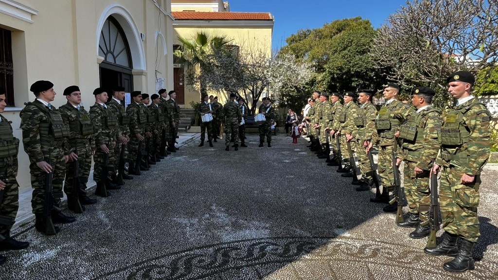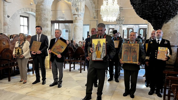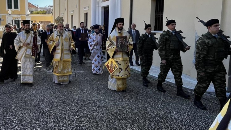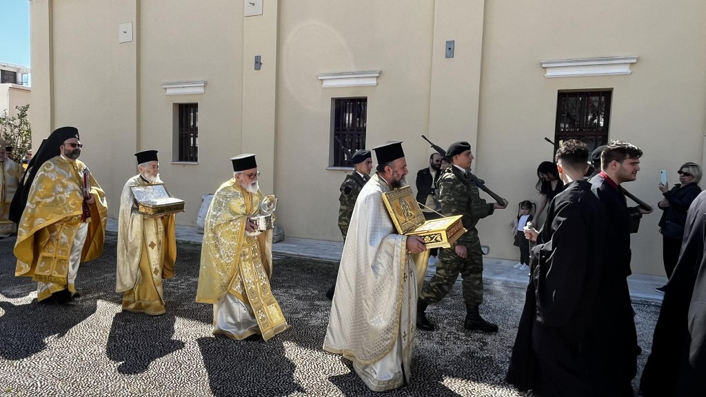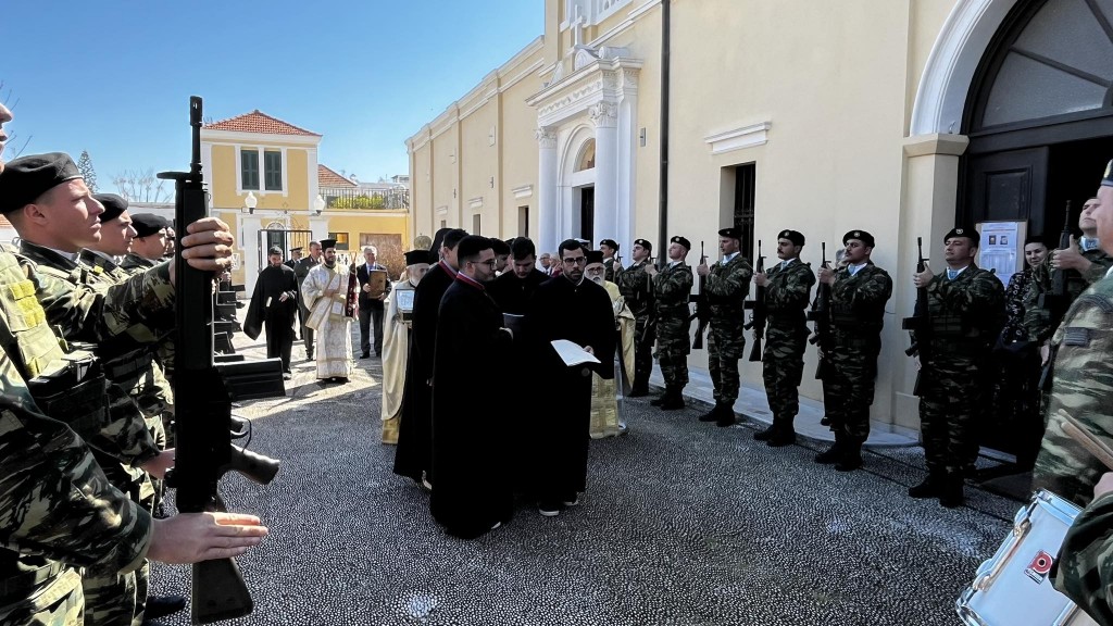 Πριν την Απόλυση έλαβε χώρα η λιτάνευση των ιερών Εικόνων και τιμίων λειψάνων με τη συνοδεία στρατιωτικού αγήματος και της φιλαρμονικής της 95ΑΔΤΕ.
