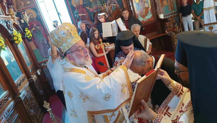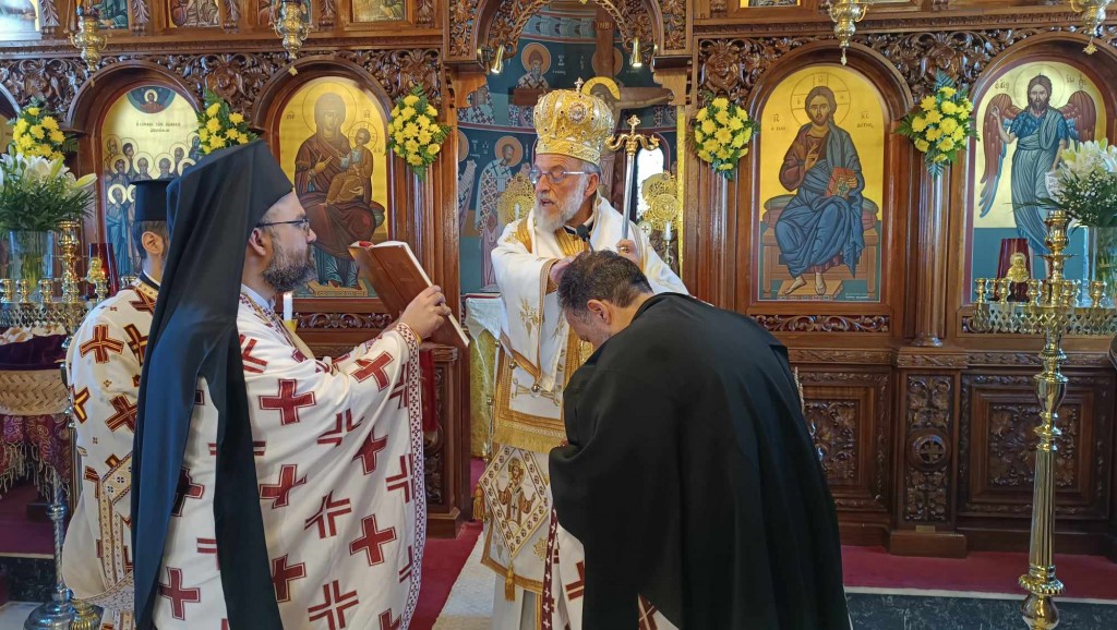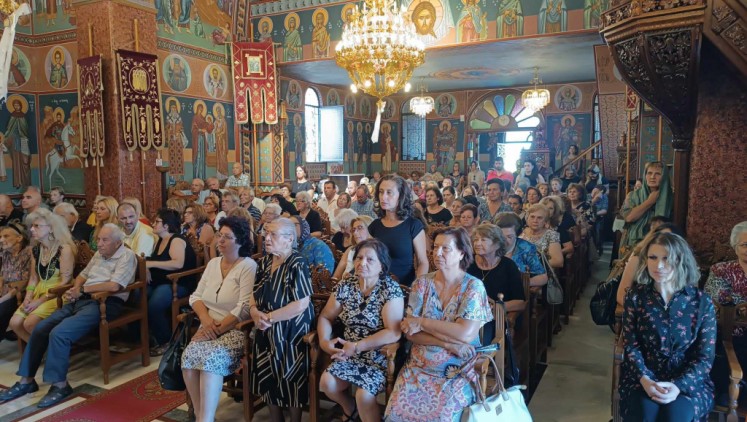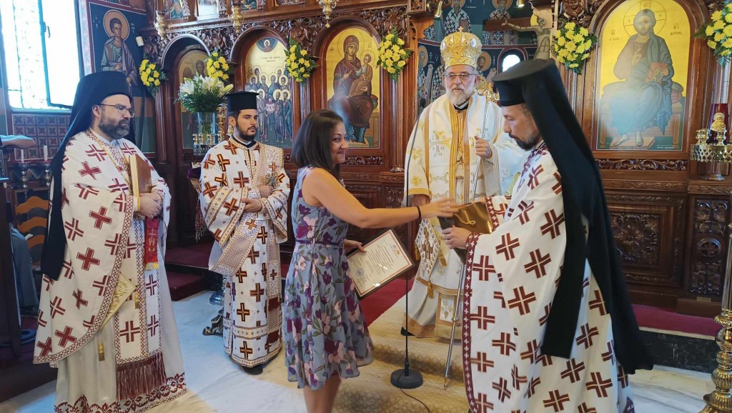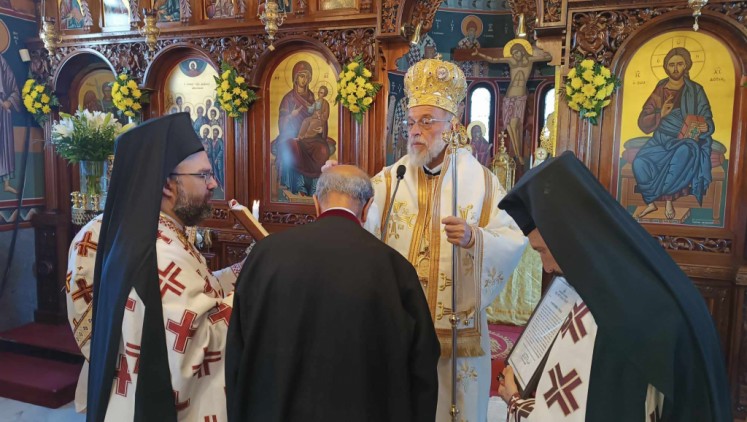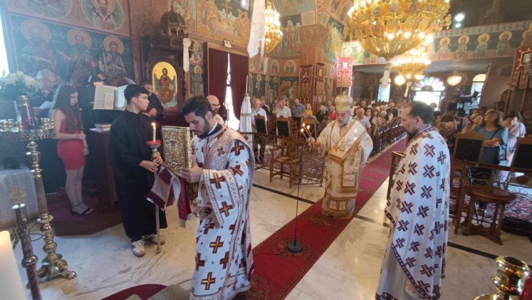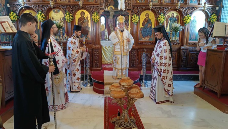 Του πανηγυρικού Εσπερινού χοροστάτησε ο Θεοφιλέστατος Επίσκοπος Ολύμπου κ. Κύριλλος. Την κυριώνυμη ημέρα της Εορτής της Θείας Λειτουργίας προέστη ο Σεβασμιώτατος Μητροπολίτης μας, ο οποίος πρό της απολύσεως εχειροθέτησε σε Πνευματικό τον Προϊστάμενο της Ενορίας Αρχιμανδρίτη Παΐσιο Φαρμακίδη και αναφέρθηκε με επαινετικά λόγια στο έργο που επί σειρά ετών επιτελεί στην Ενορία πού του εμπιστεύθηκε η Εκκλησία. Επίσης ἀπένειμε το οφίκκιο του Λαμπαδαρίου στον διακονούντα το αριστερό αναλόγιο του ιερού Ναού κ. Μιχαήλ Γαλανό, ἐπιβραβεύοντας την πολυετή ιεροψαλτική προσφορά του.